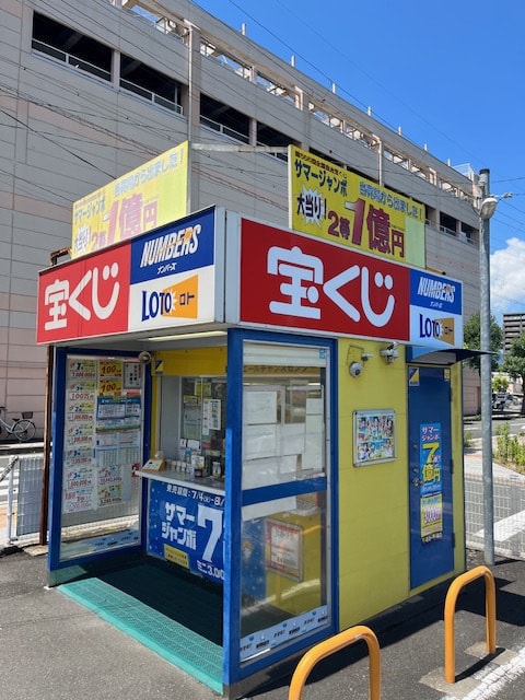 宝くじファンお好みのラッキーカラー/ゴールデンイエローで、京都府の北部方面でよく当たりが出ると人気の売場です。